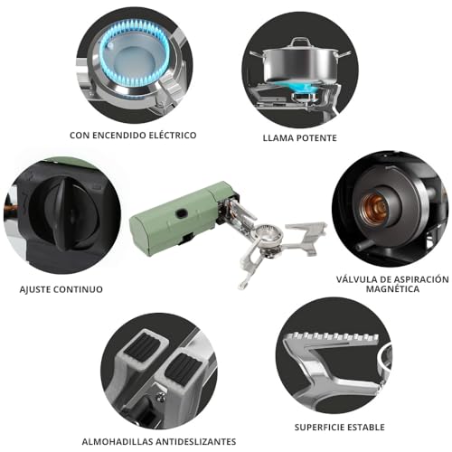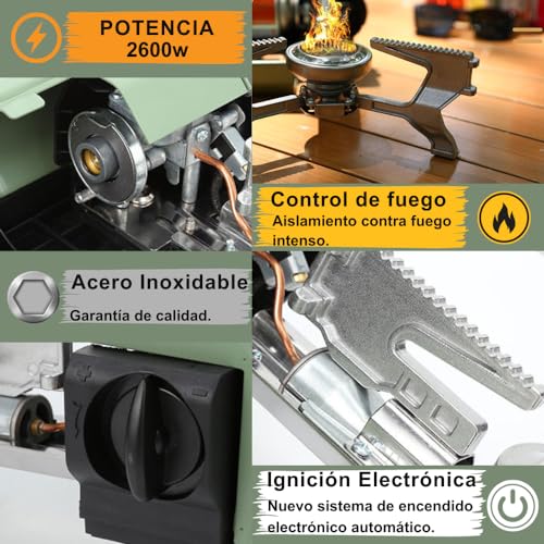 ✅𝗦𝗘𝗚𝗨𝗥𝗢 𝗬 𝗘𝗙𝗜𝗖𝗜𝗘𝗡𝗧𝗘 – Controla el fuego con calidad garantizada. Ignición electrónica, 2600W de potencia para cocinar en cualquier entorno. Perfecto en seguridad y confort en el camping. Excelente alternativa a cocina de gas butano portátil, cocina gas portatil o cocina camping gas.
