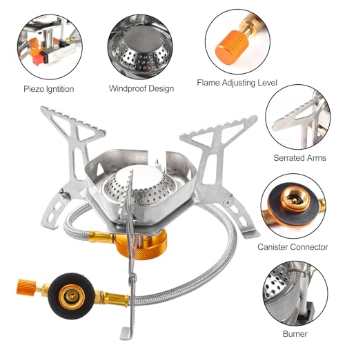 AUEJACKY Hornillo de camping de 3500 W, a prueba de viento, de gas con encendido piezoeléctrico, pequeño plegable, hornillo de gas con adaptador, para camping, pÃcnic, camping, trekking, senderismo