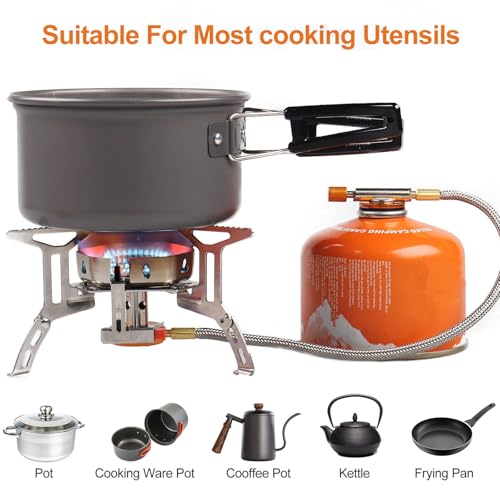 【A prueba de viento y eficiencia de combustible】Construido con un parabrisas, nuestrahornillo de campamento lucha contra el viento para aumentar la eficiencia y ahorrar energía. Con una potente potencia de 3500W, ¡calienta rápido y hierve el agua en un abrir y cerrar de ojos!