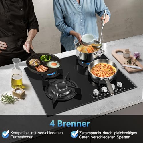 Fácil de limpiar & Ahorra espacio:Nuestra encimera gas butano de 4 quemadores está equipada con una superficie lisa que es fácil de limpiar y mantener, Se puede limpiar con una toalla húmeda, El diseño empotrado es un gran ahorro de espacio en la encimera de la cocina, Tamaño del producto: 60 x 51 x 10 cm (ancho x fondo x alto), Tamaño de corte: 56 x 48 cm (ancho x fondo), Cable de fácil instalación con una longitud de 1,4 m y enchufe, No necesita electricista, ¡sólo «enchufar y listo»!