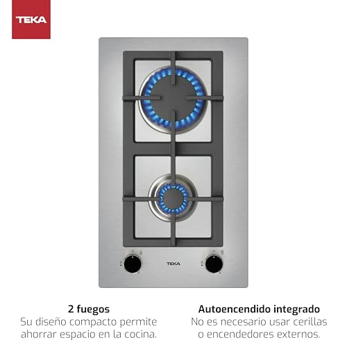 Teka EFX 30.1 2G AI AL CI NAT – Placa Modular con 2 Quemadores, de Gas Natural, Autoencendido Integrado, Parrillas de Fundición, Combinable, Color Acero Inoxidable