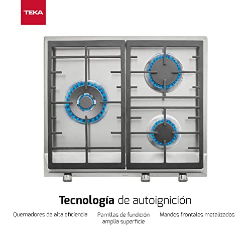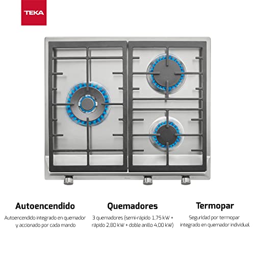 Teka EX 60.1 – Placa Gas Butano 3 Quemadores, Placa Butano 60 cm, Color Acero Inoxidable